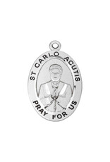 Blessed Carlo Acutis will become canonized in April 2025 during the Jubilee of Teenagers to become the first millennial saint. This oval medal, St. Carlo Acutis necklace is crafted from the finest sterling silver and measures 7/8"H x 5/8"W. His feast day is October 12 and the medal hangs on a 20" surgical stainless steel chain. Acutis was an Italian teenage techie who loved coding, video games, soccer, and animals. He acted on his constant pursuit of holiness and was faith-filled teenager. Many young people can identify with his being a little “different” at school and in the pizzerias, and on the soccer field. In addition to his fun hobbies, he spent time teaching catechism classes and serving in soup kitchens. Carlo loved to attend daily Mass and frequent Eucharistic adoration. The Word of God and the Eucharist were the center of his life. Carlo’s unwavering devotion to the Eucharist inspired him to tell the story of Eucharistic miracles through a website he created just for fun. He wanted to deepen his own knowledge of these phenomena, to strengthen his devotion to Jesus, and to invite others to grow in love for the Eucharist. The website subsequently caught the attention of people across the globe, introducing countless people to Eucharistic miracles.