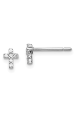 Sterling Silver Rhodium-plated Madi K CZ Children's Cross Post Earrings